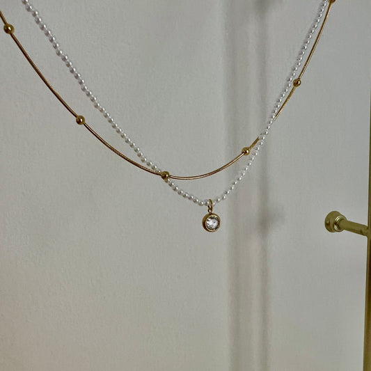 18KT Gold Plated Gemma Gem Double Layer Necklace with Freshwater Pearls