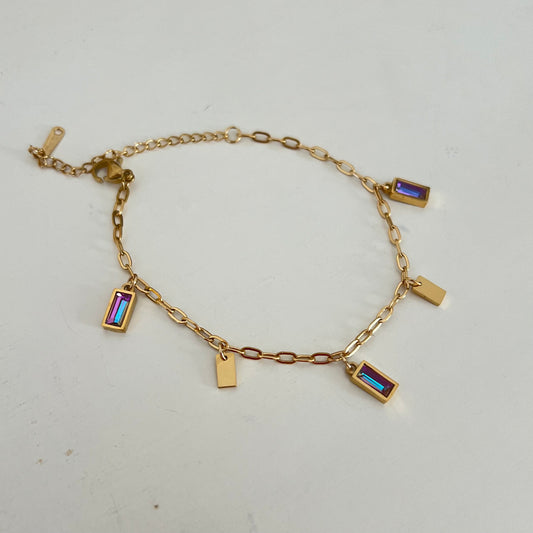 18KT Gold Plated Holographic Gemstone Charm Bracelet