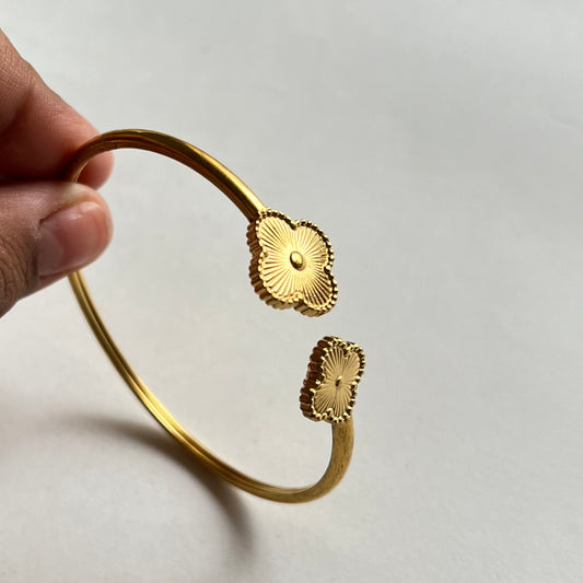 18KT Gold Plated Jaggy Clover Cuff Bangle
