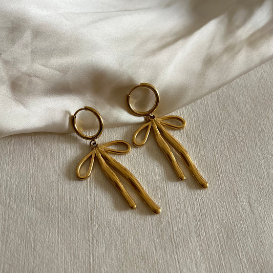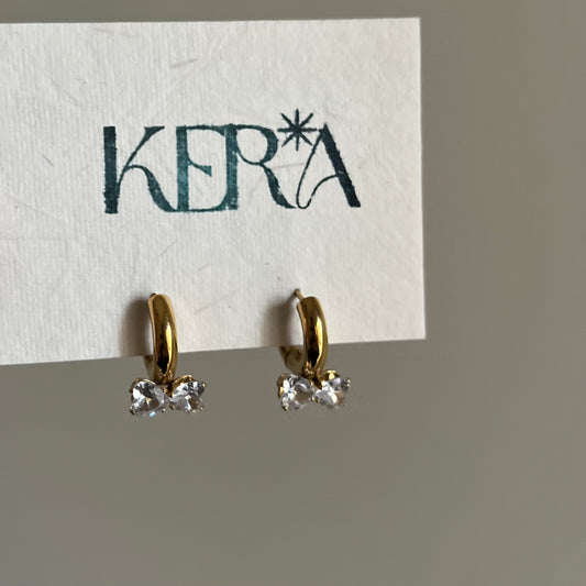 18KT Gold Plated Gemstone Bow Huggies Earrings
