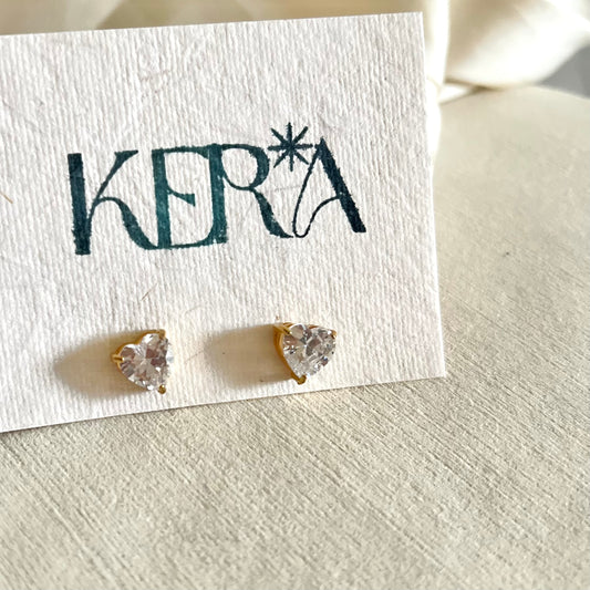 18KT Gold Plated Heart Gemstone Stud Earrings